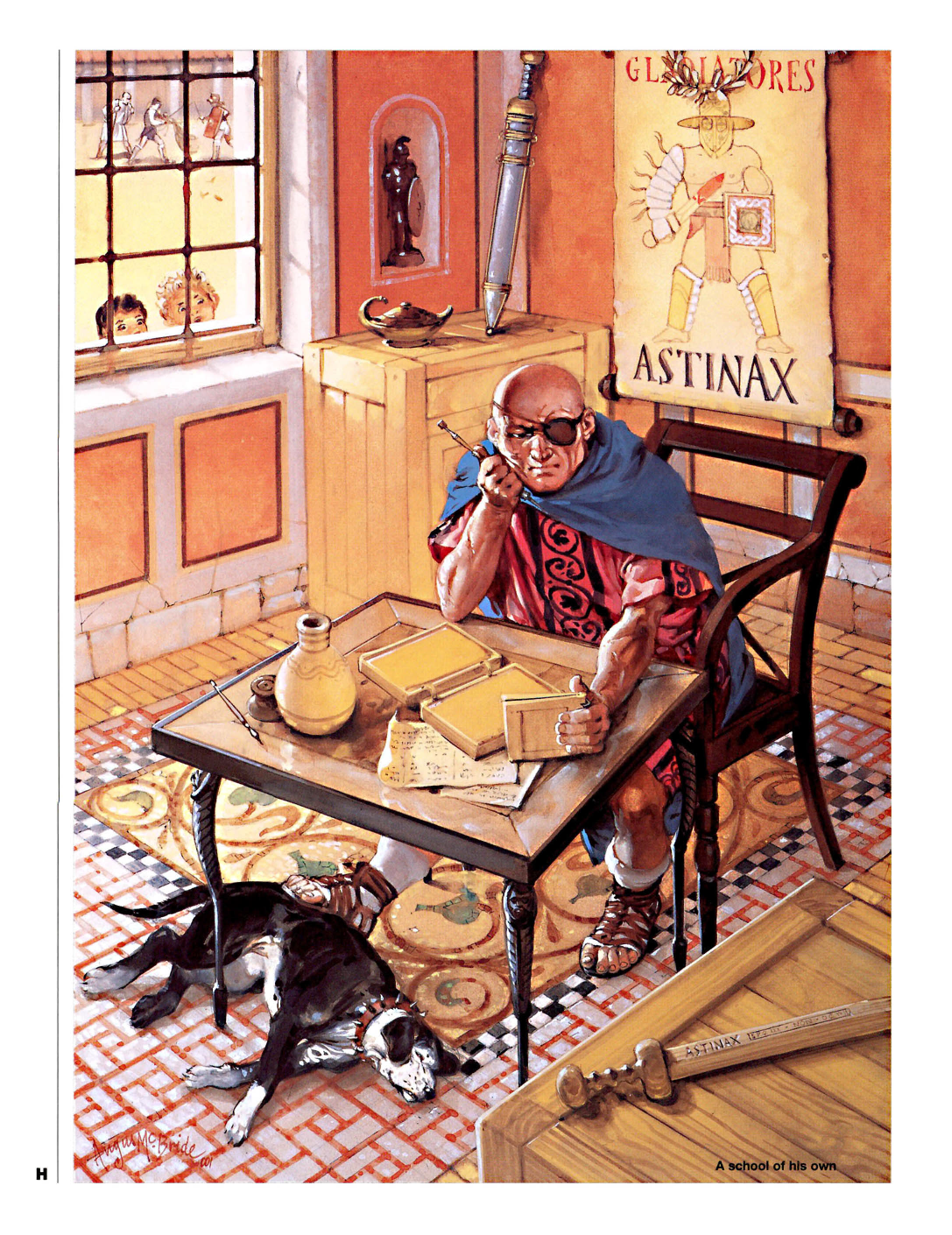 Da un punto di vista visivo, un importante fonte d’ispirazione è stato questo disegno dell’artista Angus McBride tratto dal volume Gladiators 100BC-200AD della Osprey. La presentazione di Astynax è ispirata da questo disegno.