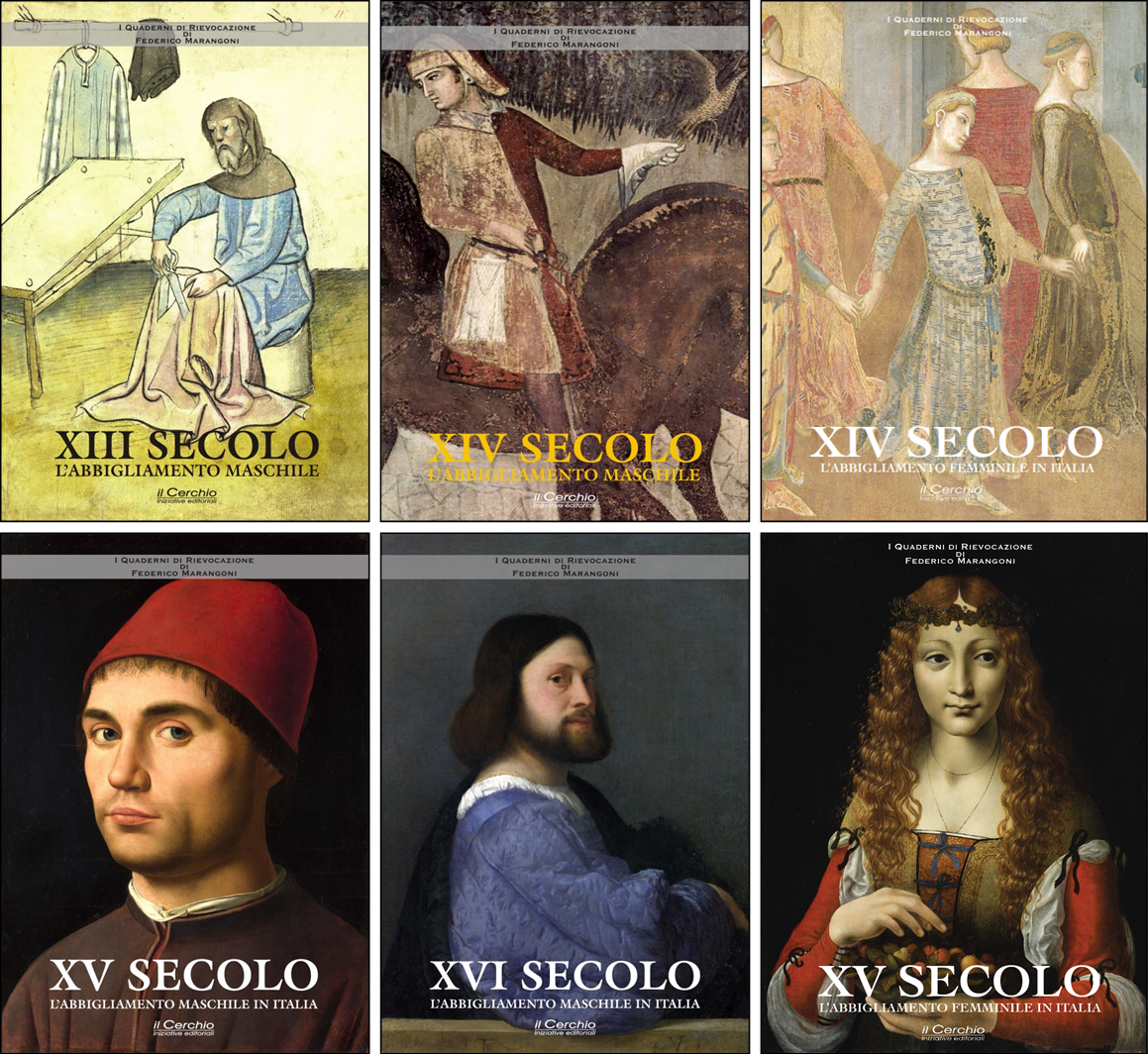 Sì, sono stato molto felice che la Casa Editrice Il Cerchio, per la quale lavora spesso persino Franco Cardini, e per i cui tipi sono stati pubblicati numerosi trattati di scherma storica, abbia apprezzato il mio progetto. Si tratta infatti di una collana di una decina di volumi, che coprirà tutto il periodo dal XII al XVII secolo, dedicandosi sia all’abbigliamento maschile che femminile, e forse un giorno anche a quello militare… Ma un saggio di storia del costume concettualmente non è differente da un qualsiasi altro saggio storico: vanno scelti il contesto(cronologico e geografico ad esempio) e le fonti ad esso relative, organizzati i materiali e finalizzato il discorso in modo da dare un quadro preciso di quello che si vuole descrivere al lettore. Io però ho cercato di compiere uno sforzo in più rispetto alla maggior parte dei lavori che in tempi recenti, sono stati pubblicati (e non sono pochi). Il mio obiettivo, infatti, era di far dialogare fra loro tre tipologie di fonti, che raramente vengono prese contemporaneamente in considerazione: i documenti d’archivio, le fonti iconografiche e i reperti archeologici, in modo da creare una relazione parole-immagini-oggetti che desse maggiore concretezza ai documenti e precisa contestualizzazione alle immagini. E questo vuole dire cercare e vagliare una gran messe di informazioni.