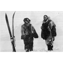 Scelse per accompagnarlo Etukishook e Ahwelah, due cacciatori inuit ventenni che aveva avuto modo di conoscere durante la prima parte del viaggio. Portarono solo due slitte trainate dai 26 cani fra i più forti, caricate con il kajak e cibo sufficiente per ottanta giorni.