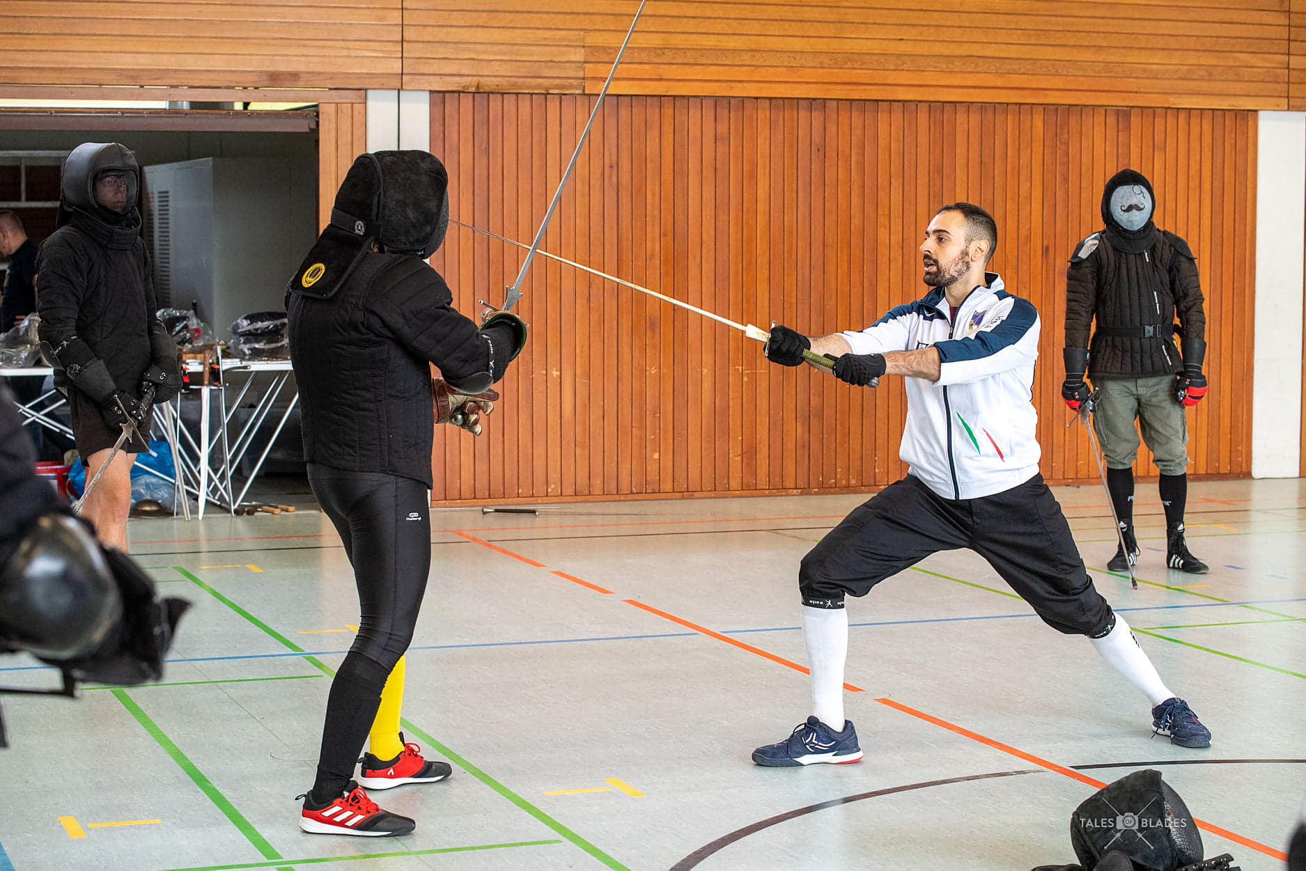 Ho rincontrato Federico in diverse occasioni in gara in cui ero presente per lo più come arbitro; devo dire che un paio di volte gli ho anche fatto vedere un cartellino, ma ho sempre visto in lui un atleta preparato, informato, corretto, sempre sul pezzo delle ultime novità tecniche e disposto al confronto. È un atleta plurimedagliato, con parecchie ottime esperienze anche all’estero in tornei internazionali di prestigio e nonostante ci siano altri nomi italiani e non che per il mondo HEMA fanno e hanno fatto molto, mi sono rivolto a lui perché lo conosco di persona e so che è sempre molto attento a ciò che accade in questo strano mondo schermistico.