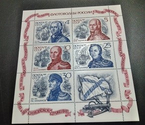 Nel periodo 1987-1989, la allora Unione Sovietica rese omaggio alla storia della Flotta Russa, con l’emissione di una serie di francobolli tematici di ammiragli e battaglie della marina dell’epoca zarista.