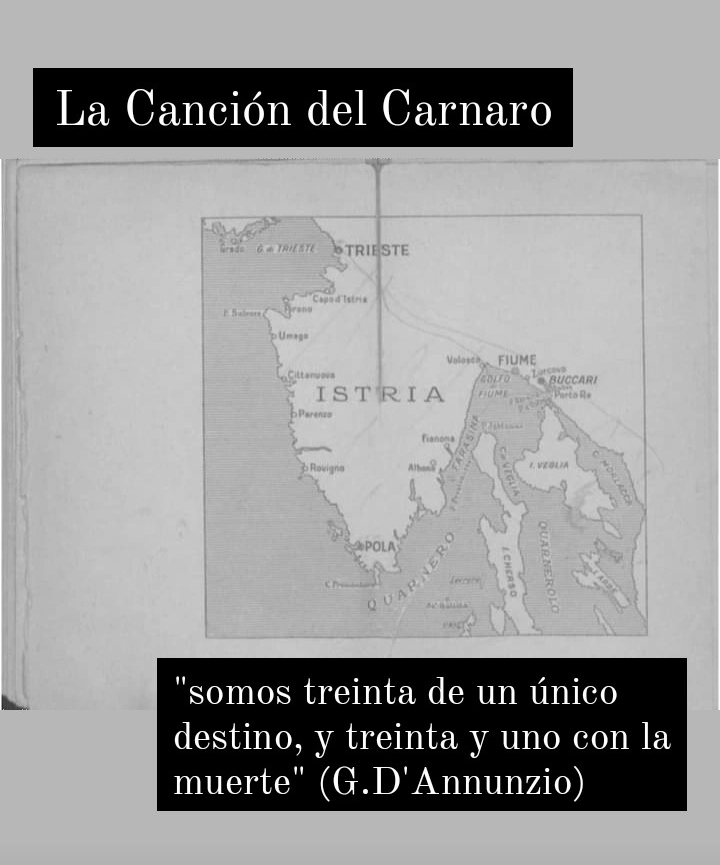 Además el mismo Poeta compuso la denominada “Canzone del Quarnaro” (Canción del Carnaro); así el «incipit» del poema: “Somos treinta de un único destino, y treinta y uno con la muerte”.