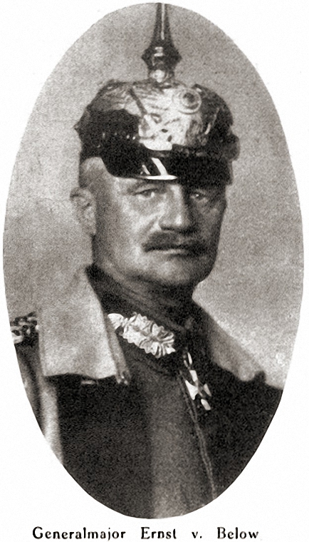 Da sx a dx: Luigi Cadorna, Luigi Capello (comandante II armata), Otto von Below (comandante della XIV armata austrotedesca) e il cugino Ernst von Below (comandante 200a divisione tedesca).