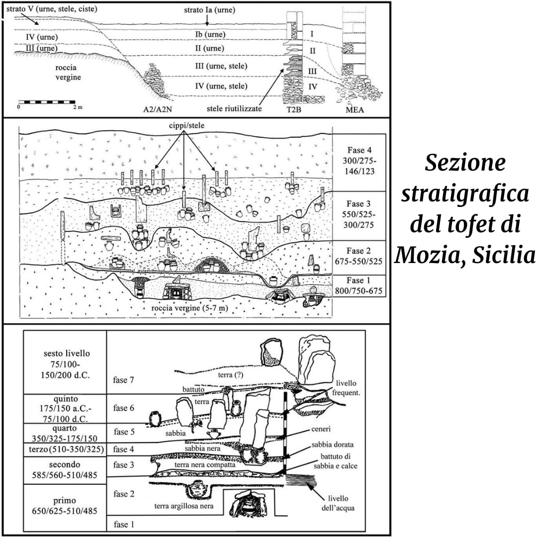 “Con il vocabolo tofet si indicano delle aree a cielo aperto caratterizzate da un terreno destinato alla deposizione di urne cinerarie contenenti resti cremati di bambini e/o di animali, in genere caprini, e all’erezione di stele, che in alcuni casi, soprattutto nelle fasi più antiche, possono tuttavia essere assenti.”