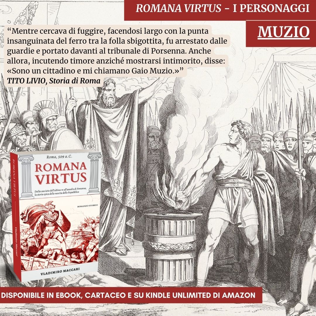 Nel mio nuovo romanzo, Romana Virtus, ho dunque cercato di narrare la storia di Muzio e del suo famoso “sacrificio” della mano intrecciando strettamente l’aspirazione alla virtù, tipicamente romana, e l’inevitabile sofferenza che l’accompagna: entrambe premesse indispensabili per arrivare a più alte mete.