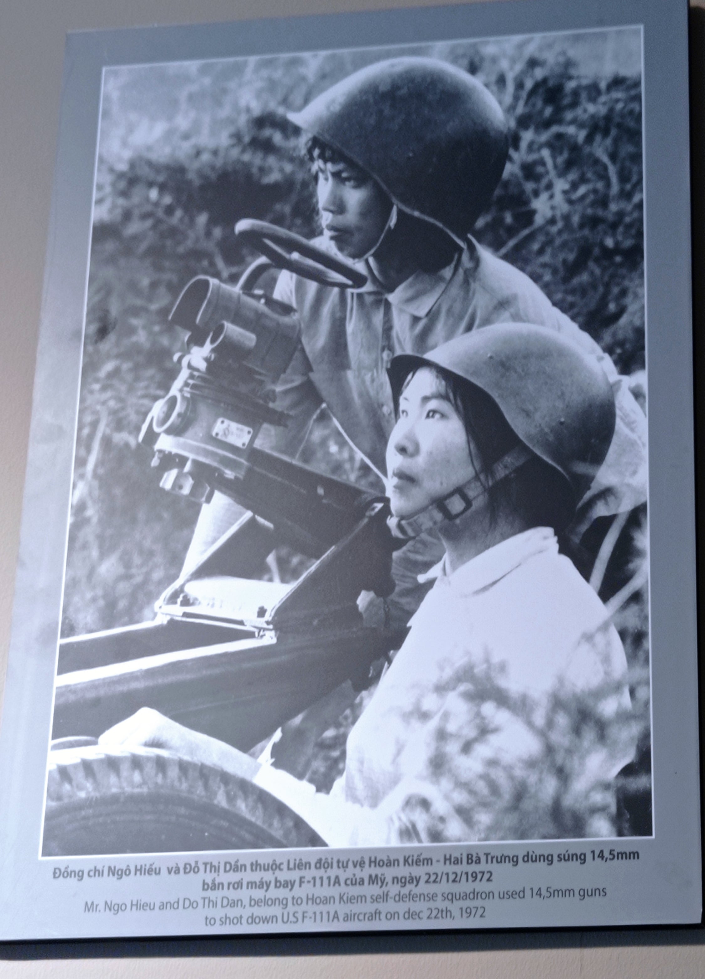 Il visitatore è accolto da una statua di bronzo raffigurante, almeno – nella penuria informativa tipica di ogni museo vietnamita – il popolo di Hanoi impegnato nella guerra di resistenza all’invasore imperialista. Il primo soldato impugna una mina anticarro di origine giapponese, il cui impiego richiede il sacrificio del soldato.