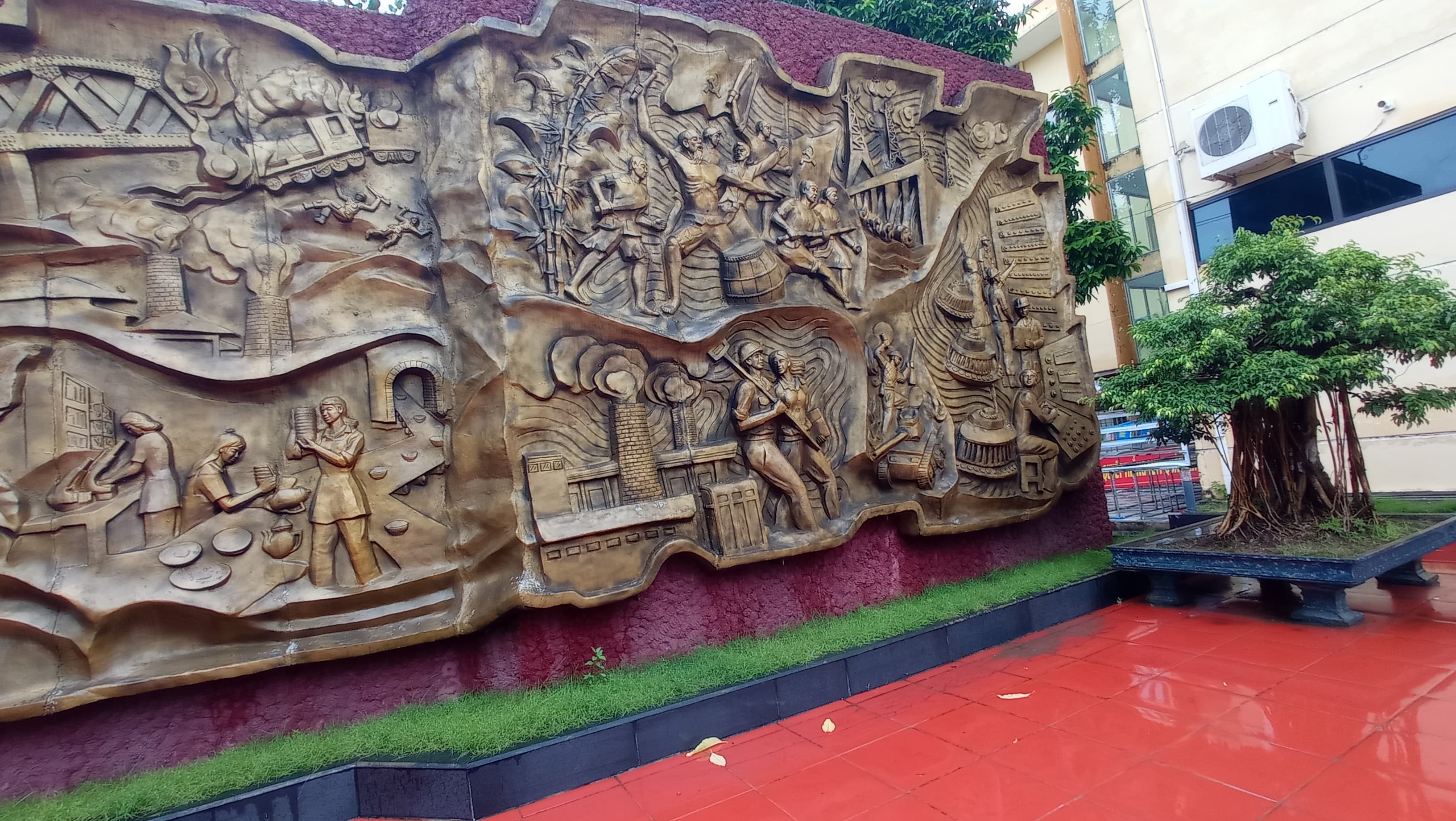 Infine, un caratteristico quanto lungo rilievo parietale di bronzo rievoca i principali avvenimenti in cui questa regione militare è stata protagonista.