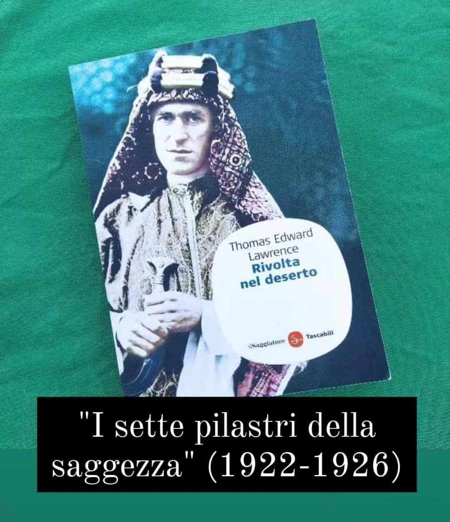 Ora, la lettura dell’opera originale di Thomas Edward Lawrence (1888-1935) apre una nuova e più ampia prospettiva: un libro scritto come un romanzo, dove tuttavia trova posto da parte dell’autore – senza iato – una miscela di emozioni e ricordi personali, sensazioni e valutazioni politiche, elementi di sociologia ed economia. Avvenimenti bellici, rivissuti attraverso il filtro della memoria negli anni successivi al conflitto: un’epoca nella quale una fase di crisi personale sembra viaggiare in parallelo con una fase ugualmente critica della vita dell’Impero Britannico, nel periodo tra le due guerre mondiali.