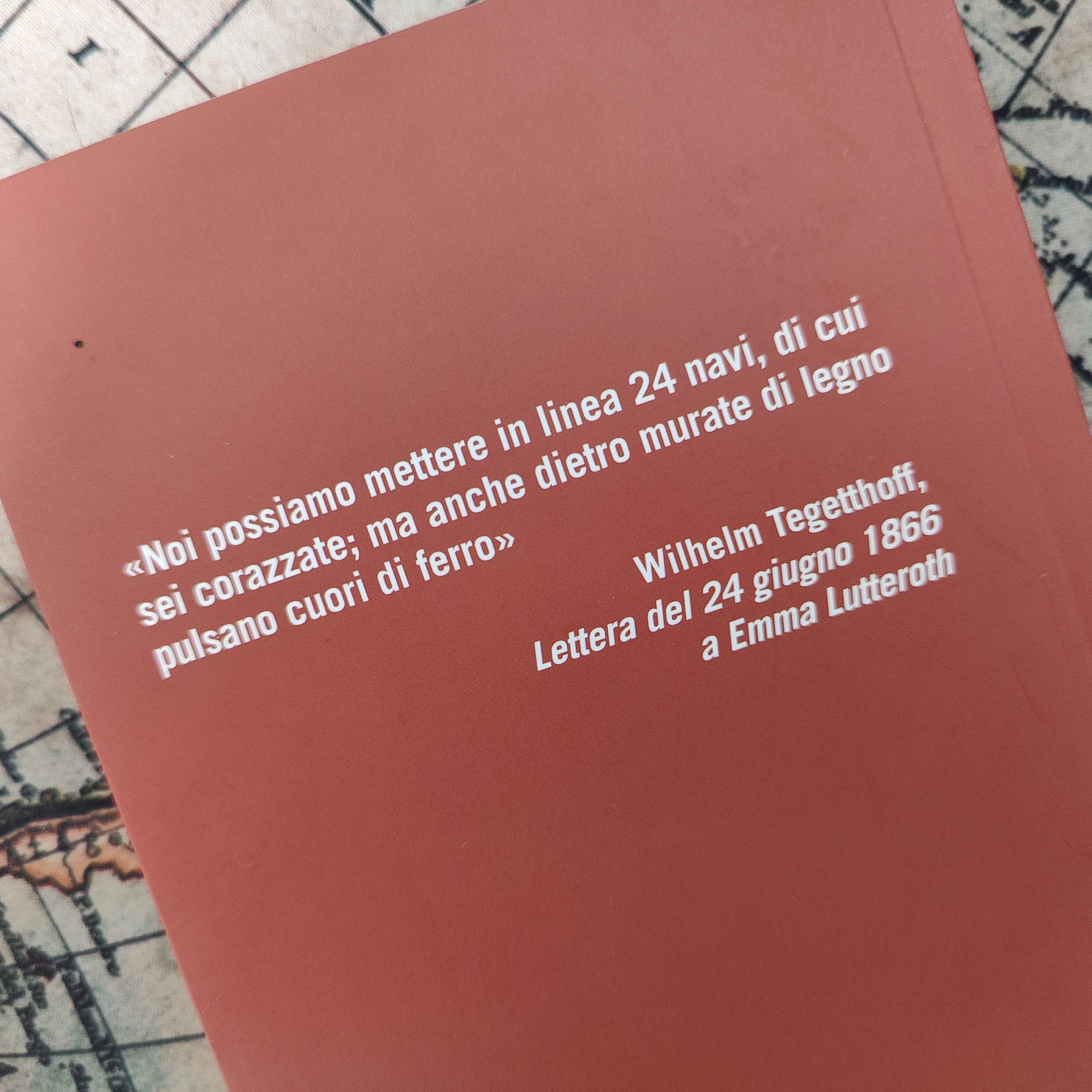 Il confronto tra due marine: e delle loro storie, nel condizionare l’andamento e l’esito dello scontro di quel 20 luglio 1866. Da un lato una potenza tradizionalmente “continentale” come l’Impero Austriaco: che all’atto di dover costruire una marina da guerra, aveva progressivamente predisposto una serie di strutture e cantieri in basi nazionali (tra cui spicca la munitissima base di Pola) da cui sarebbe uscita una serie di unità caratterizzate da una sostanziale omogeneità tecnica e/o strutturale. Sullo sfondo di questo sforzo poderoso, accanto a figure di grande spessore della politica e della società austriaca, così come del mondo militare dell’Impero, potrà ben presto ritagliarsi un ruolo di primissimo piano la figura di Wilhelm von Tegetthoff (1827-1871): con le sue intuizioni, la sua a volte ostinata risolutezza e il suo “vedere lontano”, il giovane ufficiale – poi ben presto promosso contrammiraglio – sarà stato l’autentico demiurgo di una flotta da battaglia equilibrata nelle sue diverse componenti e ben addestrata. Questo libro ci offre proprio uno “spaccato” molto profondo della storia e della personalità di Tegetthoff: dalle sue origini sociali e familiari, dall’infanzia e poi fino alla giovinezza ed età adulta; la sua carriera militare, dall’Accademia fino ai più altri gradi di comando e poi alla giornata che ne avrebbe consacrato la leggenda. Anche con la preziosa testimonianza, come “in presa diretta”, del carteggio con la baronessa Emma von Lutteroth, sua “amica” e confidente particolare.