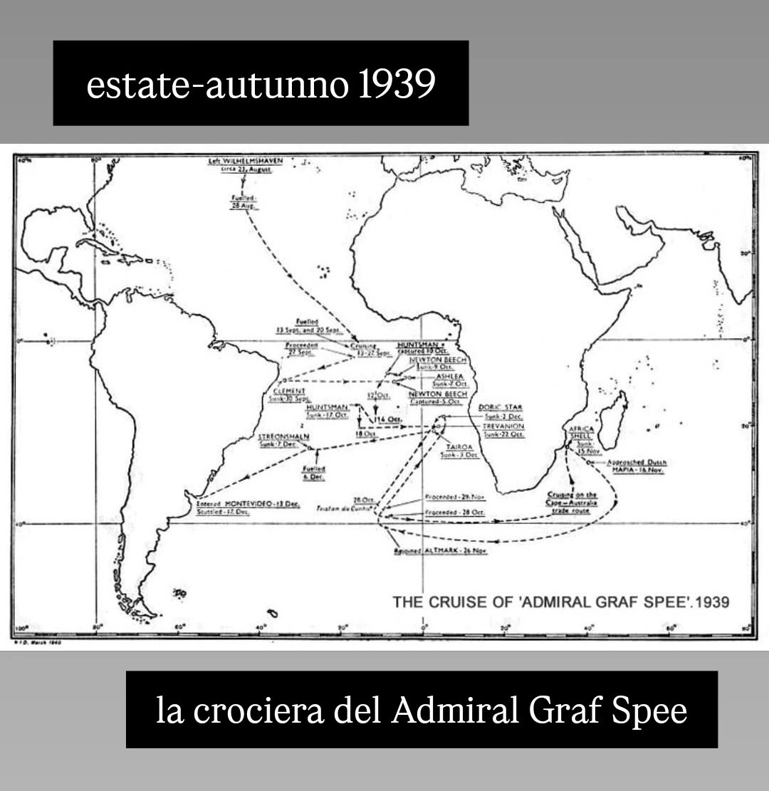 Dopo che il sommergibile U-47 di Gunther Prien ebbe violato Scapa Flow silurando la corazzata HMS Royal Oak (17 ottobre 1939), riscattando allo stesso tempo la memoria del sacrificio del U-116 di Von Emsman (28 ottobre 1918) e l’affondamento della Flotta d’Alto Mare («Hochseeflotte») per mano dei suoi stessi equipaggi nella prigionia post-bellica (21 giugno 1919), la traiettoria solitaria del Admiral Graf Spee di Hans Wilhelm Langsdorff attraverso gli oceani – dopo la partenza da Wilhelmshaven il 21 di agosto – raccoglie idealmente il testimone e la memoria del incrociatore leggero SMS Emden di Karl Von Müller nell’estate-autunno del 1914, perpetuando inoltre il ricordo della Divisione Navale d’Oriente della Marina Imperiale Tedesca.